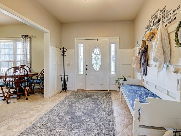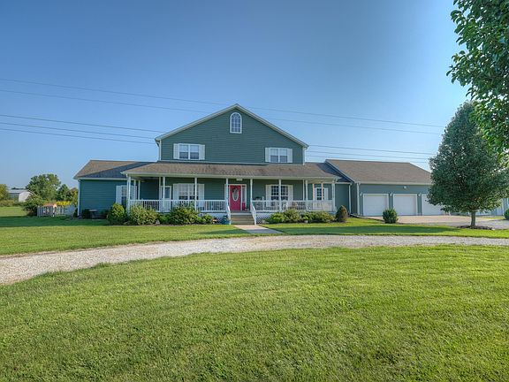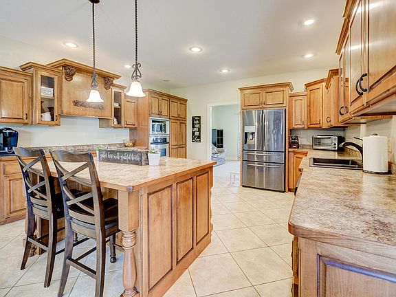Enjoy this country oasis with room for everyone! 5bd/4.5ba built in 2007. Inviting entry leads into spacious living area with 2-story ceilings. Main floor master with 2 walk-in closets and en suite. Master chef's kitchen with maple glazed cabinets, center island and hearth room, perfect for 2nd dining area. Second floor features 2 additional bedrooms and a theater room/2nd living area. West end of home also has mud room, full bath, main floor bedroom and additional bedroom that could be another living area.Fenced back yard with patio & deck area.