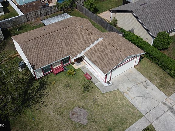Approximately 20 miles from Jacksonville Beach, and close to all of Mandarin and Beauclerc's shopping. This 3/2 home has brand new appliances(Stove & Microwave are Kitchenaid), up-dated bathroom vanities, brand new ceiling fans and light fixtures, large family/dining area with bar, 2 car oversized garage, screened in lanai, fenced in backyard, and brand new 8'x10' shed, pre-wired for electric. The outside trim has been recently painted, along with partial painting on inside walls. The home is located on a cul-de-sac, with no HOA's.