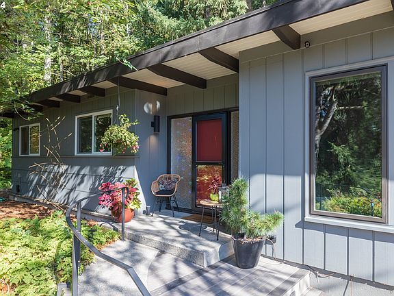 Make every day a vacation! Tucked in the winding, leafy green streets of Arnold Creek, this slice of paradise insists you relax, embrace nature and find your Zen. Inside, midcentury magic abounds. Beamed ceilings, a swanky 60s fireplace surround, original hardwoods, figured rolled glass and 1960s flagstones in the entry. A remodeled kitchen designed for hanging out, with a lavish drinks and coffee station, clever cabinets (and a lot of them) and miles of countertops, all lit up by a generously sized skylight. Remodeled bathrooms, a primary suite that opens directly to the hot tub for an evening soak under the stars. Outside – a wooded wonderland of a backyard, protected by a conservation easement. Head out for morning coffee and enjoy the bird song; in the evening, mix up a midcentury Manhattan, sink back in an Adirondack chair and drink in the quiet night sky. There’s a gravel patio, a Timbertech deck, a Shed Shangri-La with its own front porch for year-round grilling and your very own path through the woods. Live just minutes from the city yet head home every day to a peaceful retreat; loose those everyday stresses and cares as you settle in to your own woodland paradise. [Home Energy Score = 4. HES Report at https://rpt.greenbuildingregistry.com/hes/OR10231514]