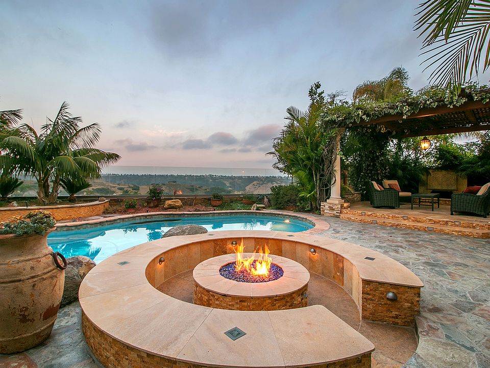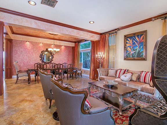 Fabulous tropical resort style oasis w/ panoramic mountain & canyon view! This 6 Br 4.5 Ba Lexington plan 3 has tons of high end upgraded details, features spacious master suite & luxurious bath w/ canyon view, hand-laid travertine & stone accents, custom designer paint throughout, solar system, 5.1 surround sound system. Gorgeous outdoor living on extra-large premium lot w/ salt water pool/spa, BBQ Island, 2 covered patios with outdoor fireplace, Koi fish ponds, large circular fire pit. See supplements!!