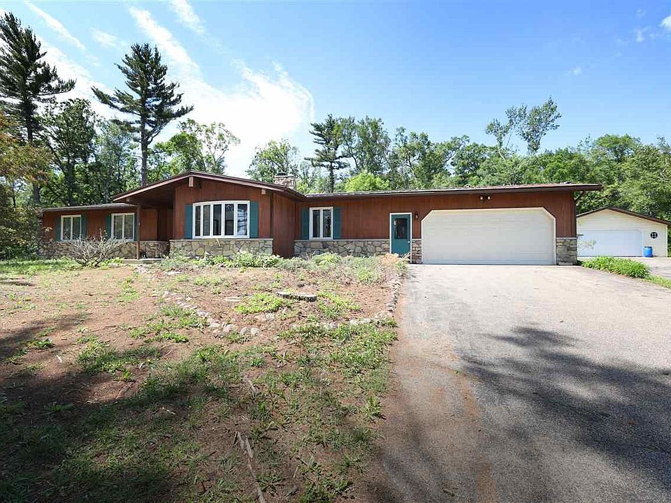 Enjoy room to roam on this 10 +/- acre property surrounded by whispering trees. This country estate is designed to fit into the scenic backdrop and features a 32x25 detached heated garage! Clean and ready for immediate occupancy this spacious ranch home has much to offer. Step inside to the nicely appointed great room anchored by a floor to ceiling stone wood burning fireplace. Flanked with light this space is open to the versatile flex space that could be a formal dining area or office. Tucked behind the great room is the fully applianed eat-in kitchen. This space can accommodate a large kitchen table. Flanked with light patio doors frame the wood backdrop and lead to a sizable deck. Located between the kitchen and garage entry is the convenient first floor laundry and separate half bath. Down the hall from the living space you will find a common full bath, two ample bedrooms, and a master suite with a private attached bath. Additional features include: attached 2 car garage, full basement, fenced yard, and much more! Located 10 minutes west of Waupaca with prime hunting and close to the Chain-O-Lakes this property is secluded in its own beautiful environment lending itself to sheer relaxation!