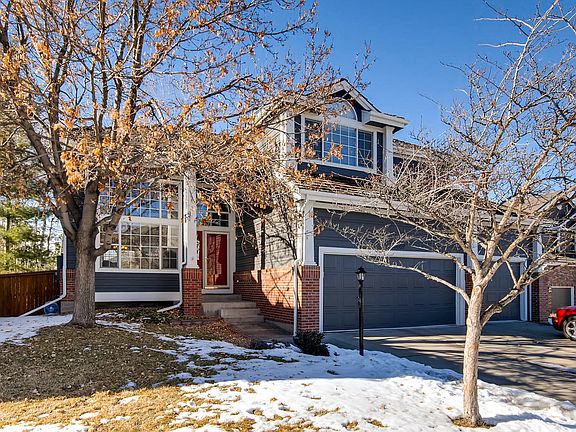 Roomy Stonegate home on cul-de-sac has great layout & large lot. 2-story living room is rich w/ natural light from 2 tiers of windows. Living room opens to dining room defined by architectural columns & tray ceiling. Sunny kitchen has wood floors, gorgeous slab granite counters, subway tile backsplash, pantry, appliances & built-in desk. Bay window surrounds casual eating space. 2-story family room has gas fireplace & built-ins. Main floor office. Spacious master suite has vaulted ceiling, 5-piece bath w/ private WC & deep walk-in closet. Upstairs secondary bedrooms are serviced by full bath. Finished walkout bsmt features large living area w/ mini bar & serving counter, sizable theater room, 2 BRs & 3rd full bath. Covered back deck w/ roll-down shades & ceiling fan overlooks shady backyard w/ playset. Hot tub included. New wood blinds. Stonegate amenities include pool, tennis & clubhouse. Walking distance to elementary and pool. Minutes to hwy, tech center, malls.