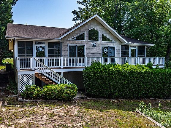 First offering of this ideal custom-built waterfront home in the quaint community of Belle Aire Estates just minutes to Deltaville with shopping, dining and Fishing Bay Yacht Club with renowned sailing school and regattas. Welcome to the light filled, open floor plan with sliding glass doors to deck and seasonal porches with HVAC. Recently renovated Kitchen with cherry cabinetry and stainless-steel appliances. Leave the hectic pace behind and chart your course for this Waterfront Retreat on Bush Park Creek just off the Rappahannock River. Welcome to a light filled, open floor plan with walls of windows for expansive water views and newly refinished pine flooring throughout. Inviting Creek Room with fireplace and vaulted ceiling that opens to chefs Kitchen with ample cherry cabinetry, stainless appliances and raised counter for seating. Perfectly sited on over 1.35 private, lush, landscaped Acres featuring 2304 sq ft with 3 Bedrooms and 2 Bathrooms. Primary Suite boosts access to seasonal porch with wide water views, walk-in Closet, and generous Bathroom. Another waterfront Bedroom with ensuite/hall Bath with sliding door to seasonal porch and waterside deck. Detached Two Car Garage with ideal 510 sq ft Guest Suite above featuring Kitchenette & full Bath plus Dining & Living areas making this an inviting home to share with family and friends. Oversized Garage with mini-split HVAC for working in winter or summer, tanked and tankless water heaters and ample storage. 20 kW Generator with transfer switch. Venture waterside to Dock with two boat lifts, jet ski lift, fish cleaning station & mooring slip with 3-4 MLW+/-MLW for the boating & fishing enthusiasts. Quick boat ride to the Rappahannock River & Chesapeake Bay! Buyer to verify water depth to their satisfaction. Whether you’re relaxing on the deck, navigating the Rivers & Bay, this Coastal Home blends perfectly for seamless indoor to outdoor living. Fishing for Your Next Great Adventure? Get Hooked on Family Fun and Come hideout Waterside and Soak in the Scenery!