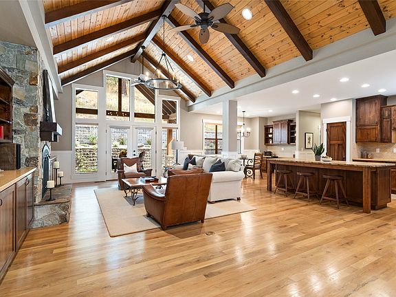 Welcome to 1067 Boat Club Drive – where timeless design meets modern luxury. Spanning 3,144 sq ft, this 4-bedroom, 2.5-bath home is a showcase of craftsmanship, comfort, & thoughtful design. The home sits above the street, offering elevated views across the ponds & walkways of the neighborhood parks. The open floor plan features hardwood floors throughout the main living areas, custom alder cabinetry, wainscotting, vaulted ceilings, exposed wood beams, a stone gas fireplace, custom alder built-ins, extensive windows & French doors opening to the covered back patio. The chef’s kitchen is designed with function & beauty in mind. A large center island topped with a leathered granite slab, stainless steel appliances including a Wolf range & custom alder cabinetry make cooking a joy. An adjacent cozy breakfast nook is an ideal spot for morning coffee & offers ample seating and a built-in desk. The formal dining room features a custom iron chandelier and triple windows that overlook the neighborhood’s green space, creating an inviting setting for entertaining. A spacious office—or optional fourth bedroom—boasts expansive windows with tranquil views, ideal for remote work or creative pursuits. The primary suite is a private retreat, thoughtfully separated from the other bedrooms and baths. French doors open onto the back patio, while custom Belgian linen drapery panels frame the windows. The en-suite bath is a spa-like sanctuary, featuring a soaking tub, large walk-in shower with custom tile work, double sinks set in granite countertops, alder cabinetry, and a separate water closet. The walk-in closet includes a built-in shelving system for effortless organization. The guest wing offers two additional bedrooms, one with French doors to the patio, and a spacious bathroom with granite countertops, double sinks, and a shower/tub combo with custom tile. Upstairs, a 326-square-foot flex space provides endless possibilities—whether you envision a media room, playroom, or private studio. Functionality meets innovation throughout the home. The forced air gas HVAC system includes a 4” HEPA filter for enhanced air quality. A Whirlpool water softener, tankless water heater, and whole-house surge protector ensure comfort and safety. Structured network wiring, Nest system and integrated audio-visual setup bring smart home living to life. The oversized, heated three-car garage is a dream for hobbyists and gear heads alike. With approximately 800 square feet, 12’ ceilings, LED lighting, and new insulated Carriage-style high-lift doors, it’s lift-ready and built to accommodate all your Montana toys. Beyond the home, the Ponderosa Boat Club community offers unmatched amenities. Residents enjoy access to a private marina with three day-use boat slips and a launch ramp, gated RV storage, beautifully landscaped green spaces, lighted pathways, water features, and a community garden. Spectrum’s high-speed 1GB internet service is available, ensuring you stay connected while enjoying the tranquility of lakeside living. Nestled on a private, wooded acre just moments from downtown and directly across from the shimmering waters of Flathead Lake, this custom-built residence offers an extraordinary lifestyle in the heart of Montana’s natural beauty. Stroll less than a mile into downtown Bigfork, where you’ll enjoy charming shops, art galleries, fine dining, and year-round cultural events. Whether you’re boating on Flathead Lake, hiking nearby trails, or simply relaxing on your patio surrounded by nature, 1067 Boat Club Drive offers a lifestyle that’s both invigorating and restorative. Access the video of the property in the icons above.