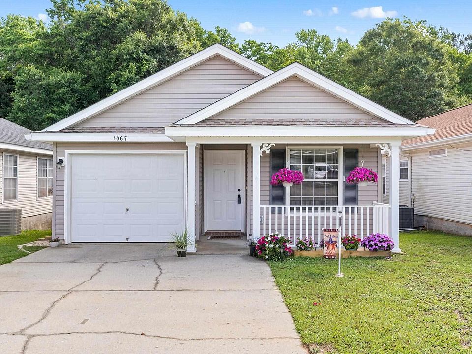 Discover this beautifully updated 3-bedroom, 2-bathroom home in Pensacola, featuring modern upgrades that create a bright and inviting atmosphere—including FRESHLY PAINTED walls, updated plumbing fixtures in the kitchen and baths, a 2022 HVAC system, 2020 roof, and gutters for added peace of mind. The kitchen offers a sleek, contemporary feel with refreshed finishes and ample workspace. The main suite, located just off the living room, is spacious enough for your California King bed, filled with soul-refreshing sunlight from multiple windows, and includes an ensuite bath with a WALK-IN closet, DOUBLE vanities, updated fixtures, and a tub/shower combo. This move-in-ready gem blends style and comfort, complete with a single-car garage and a 12x10 back deck—perfect for relaxing or entertaining. Across the street is a small playground for the kids, and just a short walk through the neighborhood brings you to a larger park and gazebo—ideal for fall get-togethers and Sunday cookouts! Centrally located in Pensacola, you’re just minutes from major shopping centers, NAS Pensacola, and I-10 for quick access to downtown, the airport, and the beaches. Come, take a look—and fall in love with this FULLY UPDATED home in a charming Pensacola community!