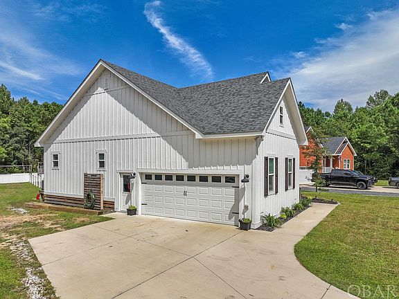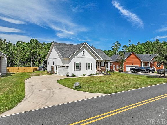 This recently built home is the perfect combination of coastal and farmhouse. Features an open floor plan, perfect for entertaining. The kitchen boasts a large island, quartz countertops,plenty of cabinet storage and a spacious pantry. The primary bedroom and bath features a tile shower, large vanity and a well thought out walk in closet. The living and dining area are open with tall ceilings and plenty of light. There are 2 more bedrooms and a bath with built-in double linen closets in addition to the bedrooms custom wood closets. Laundry wont seem like a chore in the charming, well appointed laundry room. The home has an expanded septic and is permitted by the county for an additional bedroom. The builder spared no expense with structural integrity featuring 2X6 walls throughout the interior. Never run out of hot water with the homes tankless hot water heater. For those warm Outer Banks days, enjoy the salt water pool and patio or the custom bed swing on the EZe-Breeze 3 season porch. This home also features a large garage with plenty of room for your car and or a golf cart. The landscaped home has an irrigation well pump system to help keep the grass green in the summer.