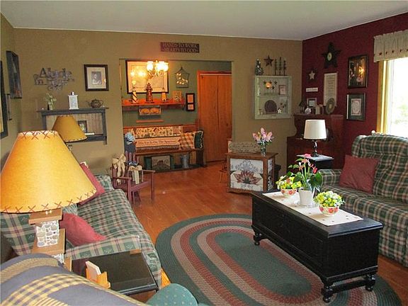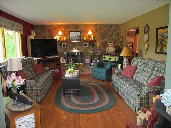 Meticulously maintained 3 bedroom, 2.5 bathroom brick, ranch house on 1.3 scenic acres in East Franklin Township. Double front doors open to a foyer on the main level which leads to a spacious living room with stone fireplace. The main level also includes 3 bedrooms that have plenty of storage, with the master bedroom containing a master bath. Another half bath, as well as a spacious dining room and eat in kitchen completes the main level. Sliding glass doors lead to a large brick porch with plenty of yard to enjoy. Downstairs features a finished living area with a cedar closet and fireplace, as well as a full bath. a large laundry room with an additional gas range and kitchen sink is located in the basement, which also has access to the integral 2 car garage. There is additional parking in the paved driveway.