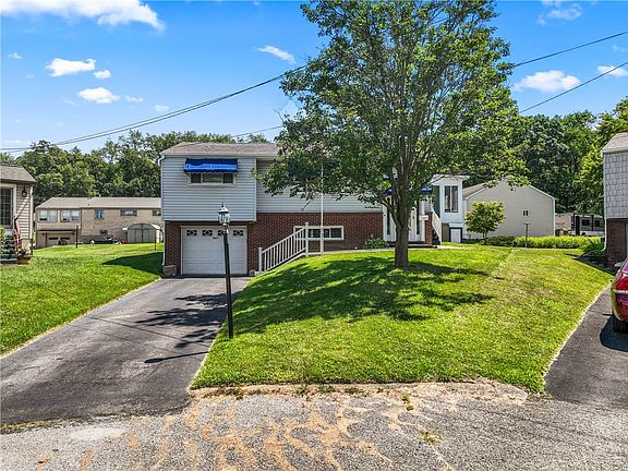 This charming split-entry is nestled on a quiet cul-de-sac, waiting for you to move right in. Built in 1962, this home has been thoughtfully updated with a modern kitchen and bath, featuring gleaming hardwood floors that highlight its classic appeal. Natural light floods the freshly painted interior, creating a bright and inviting atmosphere throughout. The sun porch is the perfect spot to unwind or entertain, while the basement game room offers additional space for leisure activities. Step outside onto the new deck and enjoy the prime cul-de-sac location. Updated kitchen and bath, new electric panel, new decking and railings, updated lighting, new hot water tank, new AC, basement Pittsburgh potty provides future potential for additional full bath.