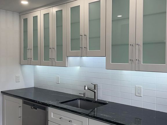 Don't miss the opportunity to own this first floor completely renovated condo in the active adult community of Century Village in Boca Raton. Condo has custom white kitchen cabinets with quartzite countertops and stainless steel appliances. Bathroom is completely remodeled with a walk-in shower. Porcelain floor tiles throughout the entire unit (no carpet). Sit outside on your private lanai enjoying a fabulous unobstructed view of the lake. AC replaced in 2022. Newer water heater. Assigned parking spot right in front of unit. Just steps away from laundry and storage unit. Schedule a showing today to make this fabulous condo yours. Not for investors as rentals are not allowed in the Guildford association.