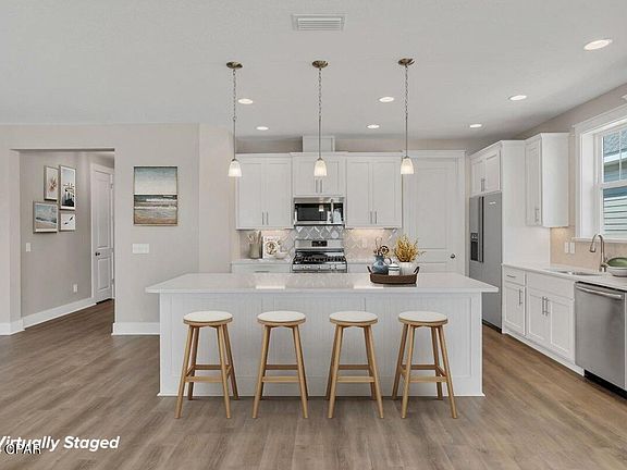 Move-in ready home available in the highly desirable Breakfast Point East community! This Craftsman style exterior elevation adds charm and character to this popular Sand Dune plan built by Fischer Homes.Boasting a spacious open-concept design with 3 bedrooms plus a separate study or flex room, providing versatility. The luxury kitchen finishes including a large island, quartz countertops, upgraded shaker style cabinetry, tile backsplash, and Frigidaire(r) Gallery stainless steel appliances. Additional interior Finishes include luxury vinyl plank flooring in the main living areas for durability and style and Tile flooring in bathrooms for a clean and modern look. Also featuring an upgraded large walk-in shower and a large walk-in closet for comfort and convenience.Embrace the outdoor living with a large, 24.5' x 10' covered porch, providing a space for relaxation and outdoor gatherings.Designed to withstand up to 160MPH winds with structural steel framing, ensuring durability and safety. Enjoy the 10'x24' covered back porch for outdoor enjoyment.
