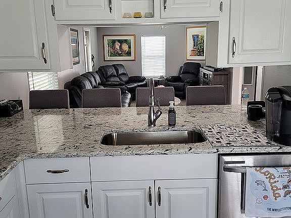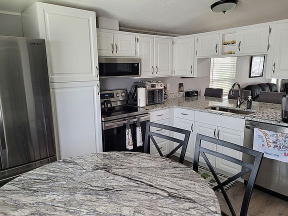 Homes in Four Lakes Golf & Country Club, a 55+ community, are on lot leased land. Owning the home, but not the land, you pay a monthly lot rent of $610 which gives you and your guest access to the amenities of the community........... Move-in ready beautiful newly remolded 2-bedroom, 2-bath home. If you're looking for a furnished home with a touch of class, this one is for you. Elegantly decorated, easily maintained. All applicants included........... All NEW kitchen. All NEW appliances. NEW vinyl plank floors. NEW Quartz countertops. Brand NEW HVAC unit with an ionizer as well as all new duct work. Screened in back with potential to expand........... This home sits on a desirable corner lot and has a workhop with workbench as well as a golfcart shed housing a golfcart that stays for the buyer........... The Four Lakes neighborhood is an affordable, award-winning retirement community. It carries on that tradition with only the finest homes, amenities and service that is second to none. Anyone looking for an active retirement community in the central Florida area need look no further. Located outside of wonderful Winter Haven you are far enough away to think your living the country life, but you are within an easy drive of shopping, restaurants, medical facilities, churches and more........... Amenities include: 22,000 sq. ft. full service clubhouse; four beautiful lakes with marina; large heated swimming pool & whirlpool spa; 18-hole regulation golf course; billiard and game room; library & surround sound theater; 24-hour gated security; exercise room with sauna; fully equipped crafts room w/ kilns; putting greens and pro-shop; and access control gate with attendant. Pets under 40 lbs. allowed.
