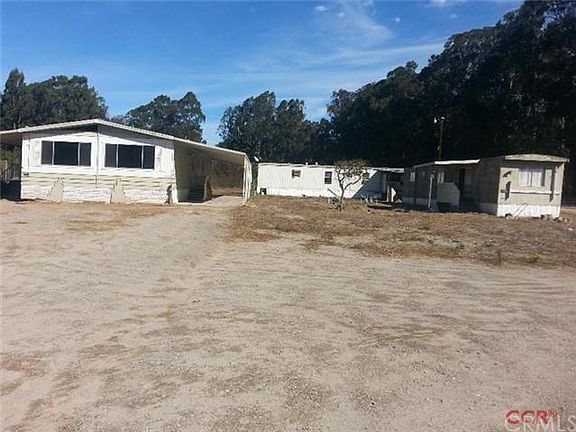 Two permitted mobile homes with one being a 3 bed, 2 bath and the other a 2 bed, 1 bath. Both in poor condition and sold as is. Large third mobile home used as storage only. Lot is 5 full acres with no eucalyptus trees and a strong well with a recent test of 23 gal. min. at 120m ft. Two water, gas and electric meters to the mobiles homes.Sold as is.
