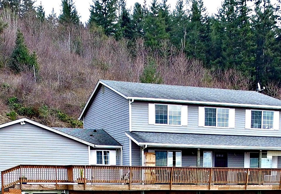 Privacy, security & amazing river & countryside views on 5.98+/-acres. Gated entry & paved drive lead to private setting. Amazing views for miles. 2 story home-master on main-W/I shower, soak tub & double sinks. Kitchen w/ wood cabinets, tile accents & large eating area w/slider to deck. Living, dining, & kitchen w/ wide plank laminate flooring. Upstairs loft/family room, 4 additional bedrooms & full bath. Acreage part fenced for livestock & includes large barn. 3 miles to I-5 at exit 32.
