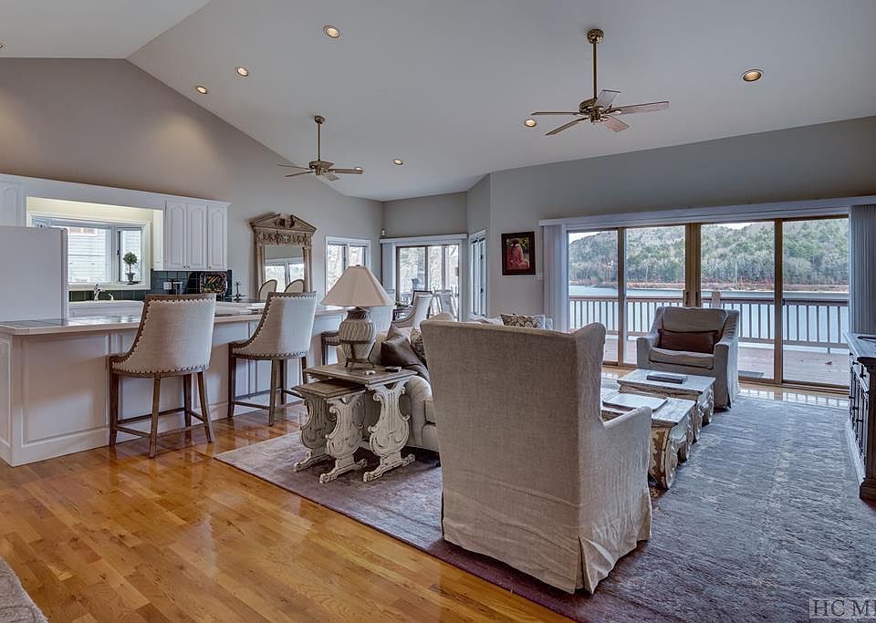 RARE TRILLIUM (Membership to Trillium Links and Lake is optional.) UPDATED LAKE FRONT HOME - This 3 bedroom 3 and 1 half bath home with abundant living/entertaining space engulfs you with the charm of Lake Glenville and the mountains beyond. The lake and your private dock are literally a Champagne corks pop from the double decks which run the length of this house. All three bedrooms, as well as the living room, an expandable breakfast area and a large family room bring in the lake and mountain views with sliding glass doors. The mountain/lake panorama is visible from nearly every room in this home. A formal dining area will seat six to ten! The large kitchen area (with large breakfast bar) centers around a top of the line Jenn-Air cooktop and oven with downdraft venting. The Master suite on main incorporates an expansive walk-in closet room (with window!) with ensuite bath featuring a lake view corner Jacuzzi tub. The lower level guest rooms, each with ensuite bath, adjoin the large family/game room which has its own wet bar kitchenette. As a bonus, this home comes FURNISHED with minimal exclusions. New owners will appreciate the many details of this home, including hide-a-bed sofa in family room, a full house generator, sealed walk in crawl space with easy winterization valves, dual air zones, dual water heaters, and more. Sewer system connection insures expand-ability. Come take advantage of this rare opportunity to own a Trillium waterfront home with optional Trillium Links and Lake Club Membership.