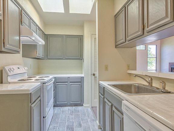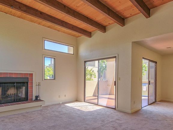 This is a single level, 2 bedroom/2 bath condo located on the second story and faces the inner green space of complex. The home has lots of natural light in all the living spaces and skylights in the master bath and kitchen. Vaulted wood beam ceiling and cozy fireplace in the living room and enjoy the generously sized tiled patio off living room and dining area. Fresh paint, newer carpet, new tile flooring in kitchen and new appliances, bathrooms with new tile flooring and vanities. Wood beamed ceiling in the master bedroom. In-unit laundry room conveniently located off the kitchen and an amazingly large walk-in pantry or use it as additional closet space! Comes with a single car garage that offers extra space for storage. Sq ft/lot size/age/schools are not verified by the listing agents.