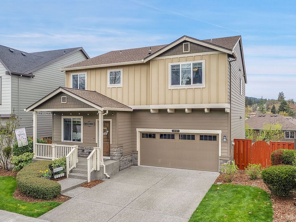This was the "Featured Home" on the block and one of the larger homes in the neighborhood. Fully loaded! Rooms are absolutely huge! Custom blinds. Fantastic lot, with views from all 3 levels. Downstairs has a separate entry with living room, full bath, bedroom, storage & slider to patio for multi-generational living or rental. Level backyard. Includes park, commons, pool, clubhouse & front yard maintenance.