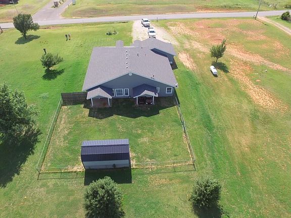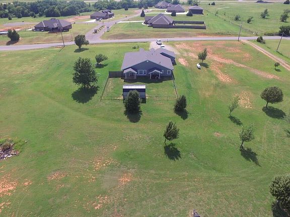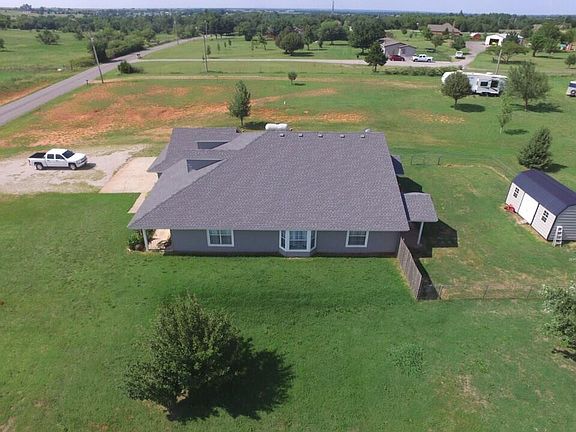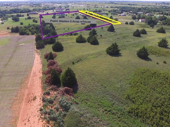 **HOME IS BEING SOLD WITH FRONT WESTERN 5 ACRES, LESS THE PRIVATE ROAD EASEMENT ACCESS ON NORTH LOT LINE. ACREAGE WILL NOT BE A FULL 5 ACRES** Survey to split land is working and will be completed simultaneously with closing. This home has recently had brand new carpets and laminate wood floors installed throughout. Kitchen updated with fresh paint, updated countertops and freshly painted cabinets and breakfast bar! New hardware and new faucet to tidy up the look of the revamped kitchen. Bathrooms have been updated with removal of wallpaper, fresh texture and paint, new mirrors and new carpet installed. All carpet has been replaced throughout entire home. What a great size complete with 2 living areas, 2 master bedroom suites, French doors to fenced back yard and a gorgeous front porch to watch western sunsets! Lots of square footage and land left for you to imagine how you could make this home your very own!