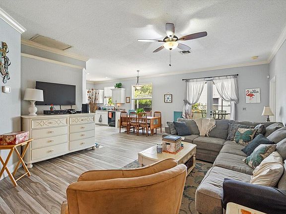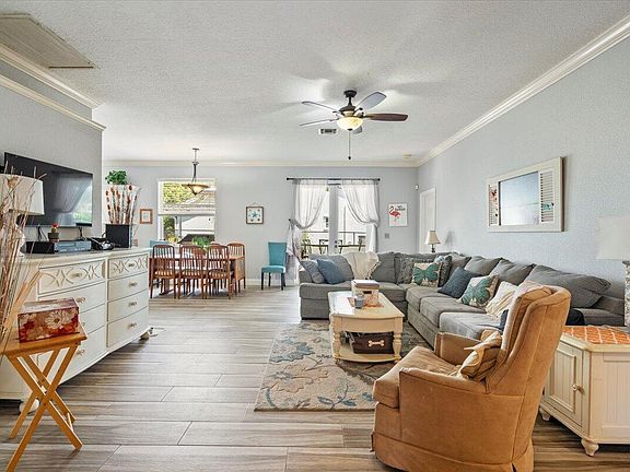 Move-in ready home with 3 bedrooms, 2 bathrooms, and a 2 car garage located in Normandy Isles! Beautifully updated kitchen with granite counter tops, crown molding, ceramic wood-look tile floors throughout entire house, 2019 roof, full hurricane protection with accordion shutters installed in 2020, and whole house generator! The home also has a screened in front entry, screened in back patio, an open patio, a fenced in yard, low HOA fees, and the community is on natural gas.