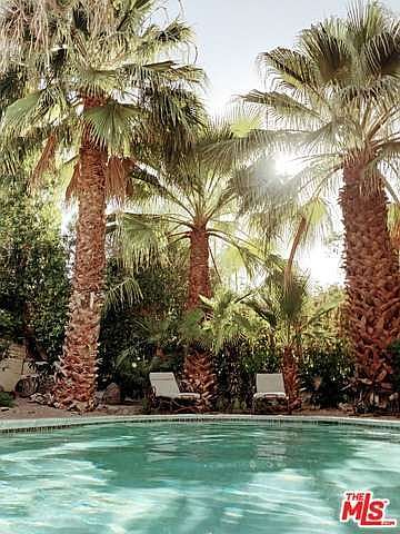 Largest listed lot (0.4 acre) on a Movie Colony/Ruth Hardy Park property under $1mil since August 2015!!! Glamorous classic California-style 1935 Palm Springs Villa, steps from Ruth Hardy Park, *Established vacation rental property, 2015 income $47K.* The home boasts an open living room, kitchen with high-end stainless steel appliances, dining room and den with fireplace. The over-sized master suite features two sets of French doors opening to rear patio and pool area. The master has an en suite bathroom and a large walk-in closet. From the arbor over the front porch, the lush lawns, stone paths and bougainvillea-covered trellises to the towering Palms, gorgeous citrus trees, a fabulous in-ground heated oval pool, and fire pit, this property truly feels like a private villa at your favorite Palm Springs resort. Unverified local folklore claims the home was originally designed by Edwin B. Willis, who created the set for the 1939 film, The Wizard of Oz.