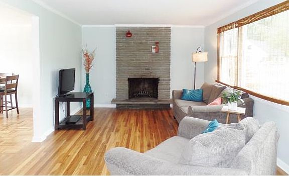 Immaculately refinished Cape Cod on cul-de-sac. This house has been completely refinished inside and out. Beautiful top quality kitchen with granite. All new bathrooms done in 2016. 2 bedrooms & full bath on first floor and additional 2 bedrooms & full bath on 2nd floor. Large and bright walkout finished basement. Two wood fireplace. Deck off of dining area overlooks park like yard. Central a/c.