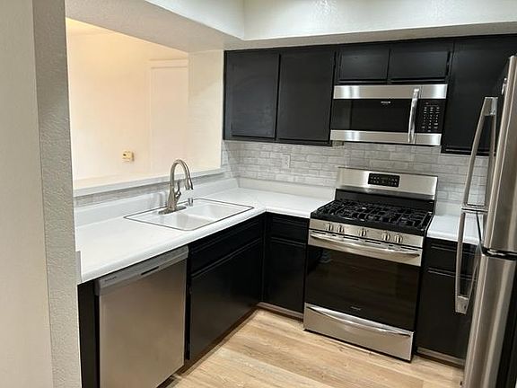 Wow what a nice upstairs 2 bedroom 2 bath unit located in a park like setting with great views of the greenbelt. Features all new wood laminate flooring throughout the unit. Remodeled kitchen with stainless steel appliances including the refrigerator. Knock down ceilings with new LED recessed lighting throughout the unit. There is stack indoor laundry. Large master bedroom with two nice size closets. Both bathrooms have been updated. One car detached garage plus numbered parking place. This is a must see! Call Andy Torres for a viewing.