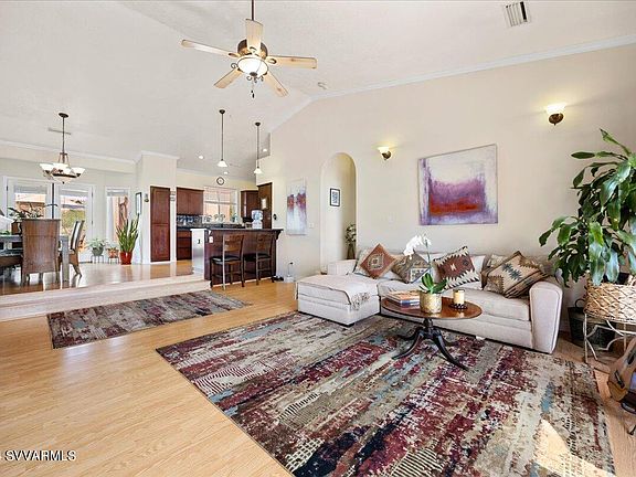 Come discover your perfect oasis where nature, community and comfort come together to offer a truly exceptional living experience within Coconino Forest. Breathtaking mountain VIEWS from this hilltop property in a serene, private gated neighborhood. Open floor plan with large windows and abundant natural light overlooking Mingus Mountain with access to Oak Creek and Spring Creek. The outdoor garden has mature apple, plum, and pear trees, added greenhouse/ attached shed. Enclosed carport, new interior paint and carpet.