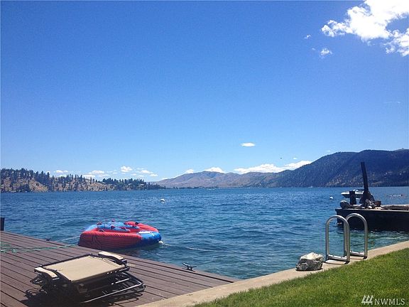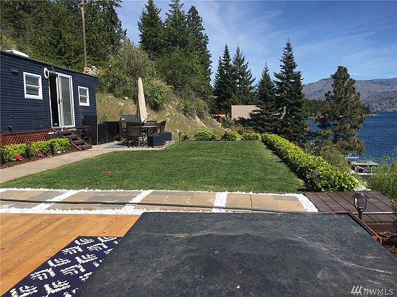 Celebrate Good Times! Unique opportunity to own a turn-key proven Vacation Rental on Lake Chelan's South Shore. Much thought & expense went into creating this one of a kind get-away for you & your guests to enjoy this Summer. Darling 2 BR 1 BA Park Model is connected to septic & included w/ sale. Outdoor entertaining abounds from the paved patio w/ firepit & TV hookup, to the lower level lawn at the Water's Edge w/shed & bev fridg, private dock w/ rare Covered Boat Lift. Enjoy Now & Build Later!