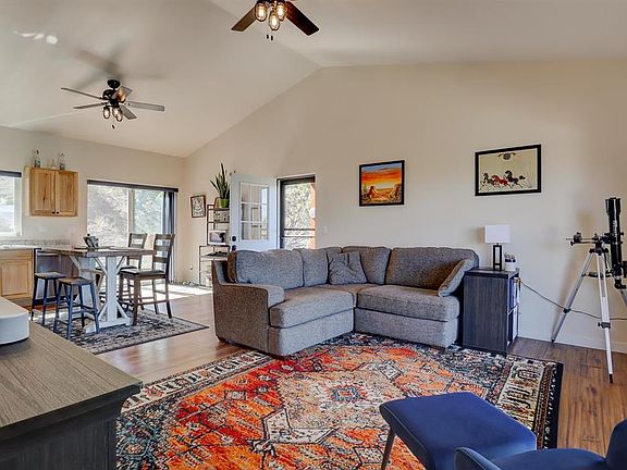 Modern Mountain Escape Surrounded by Nature. Completed in 2021, this 2-bedroom, 1.5-bath home is a nature lover’s dream. Situated among mature piñon and juniper trees, the home incorporates intelligent design with the serenity that only boundless trees and wildlife have to offer. Located near the end of a low-traffic road it lends to even more sanctuary and seclusion. Thoughtfully placed large windows and multiple glass doors frame breathtaking views of both mountains and starry skies. Inside the 1,798 square foot home, you’ll find clean modern finishes, 9-foot ceilings throughout, and vaulted ceilings in the kitchen and living room. Some key features include 2x6 framing for better insulation, a high-efficiency heating system, and a metal roof. The property includes a larger septic system—perfect for future expansion and RV water disposal. There is an RV pad equipped with water and electricity. The walkout basement features glass doors that welcome natural light and provide private entry to the lower level of the home. This spacious bonus room is a blank canvas—perfect for a guest suite, studio, office, gear room, or whatever fits your lifestyle and vision. Included downstairs is a separate room used for laundry and a half bath plumbed with future expansion in mind. Upstairs you will find the main bedroom, a second bedroom, the kitchen and the living room. The main bedroom and living room feature exquisite views of mountain ranges. As you step onto the wrap around balcony you'll immerse yourself in unparalleled views of the La Plata Mountains, Wilson Peak and the San Juans. If you enjoy exploring nearby trails, and/or relaxing on the deck watching the light filter through the trees as turkeys and deer roam about, then this is the property for you! The property is a short (3 mile) drive from the world-renowned Mesa Verde National Park, offering easy access to one of North America’s most iconic archaeological and natural wonders. The home offers a tranquil retreat in Mancos, CO and a harmonious flow to the surrounding landscape— perfect for those who appreciate comfort and a connection to nature. Ideally, the home will convey with most of the furnishings and will be transferred via bill of sale at closing.