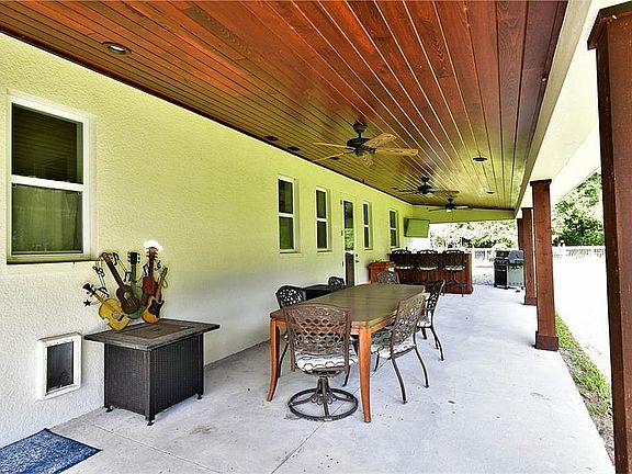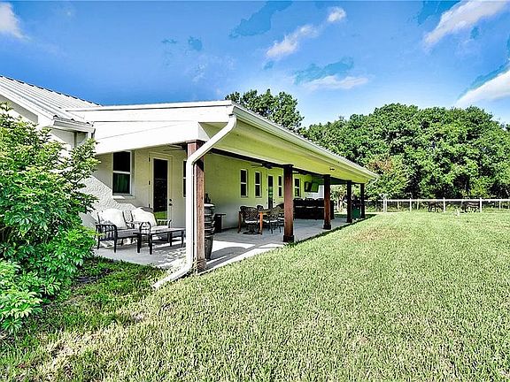 Stunning custom built home situated on 3+ acres. This inviting home boosts 9.4 flat ceilings with recessed lighting, 8 foot interior doors, large closets with extra shelving and his and hers closets in the master bedroom. More interior features include; large open floor plan with plank tile flooring throughout the home, beautiful open kitchen with white shaker cabinets and upgraded GE profile appliance package. The home is bright and airy, all of the windows and doors are impact resistant. There is an attached 3 car garage, 16X24 workshop with electricity, 30X50 Steele building with roll up doors, big enough to store your RV and more !! Both porches have cypress tongue and groove ceilings with an outdoor kitchen on the back porch perfect for entertaining . The property is fenced and cross fenced with a 3 stall barn and tack room with electric and water. Ideal property for horse lovers. Beautiful inside and out with quality craftsmanship come see for yourself !