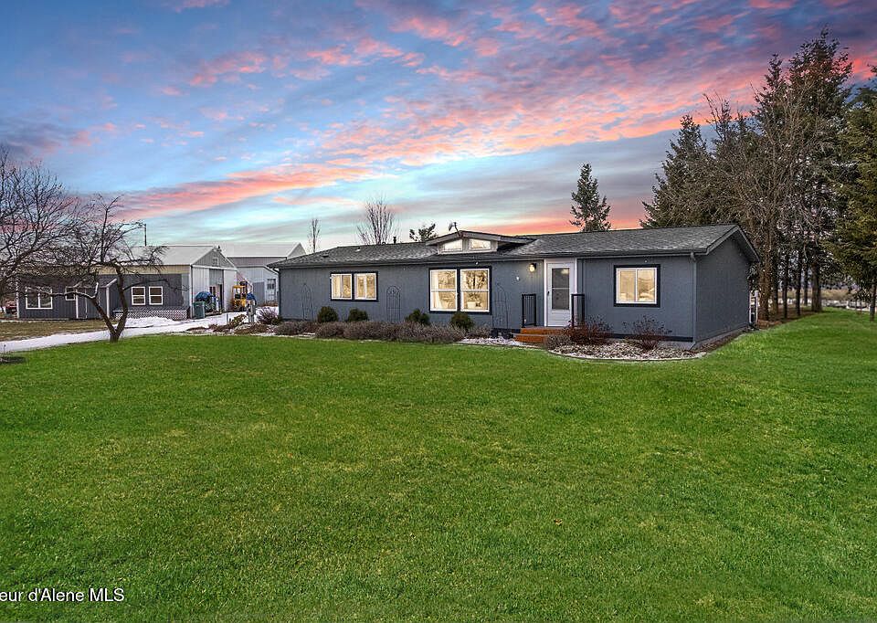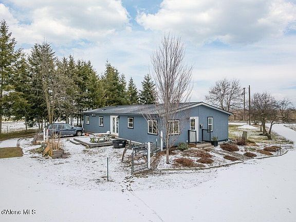 Experience wide-open space & breathtaking prairie sunsets from this 3 bedroom, 2 bath manufactured home plus office/den, built in 2011 and featuring a newer roof. PLUS separate living unit! Located on the highly desirable Post Falls prairie, adjacent to working farms, this property offers nearly 5 usable acres w/ panoramic mountain views and peaceful rural surroundings, all easily accessible by publicly maintained roads & alley access.