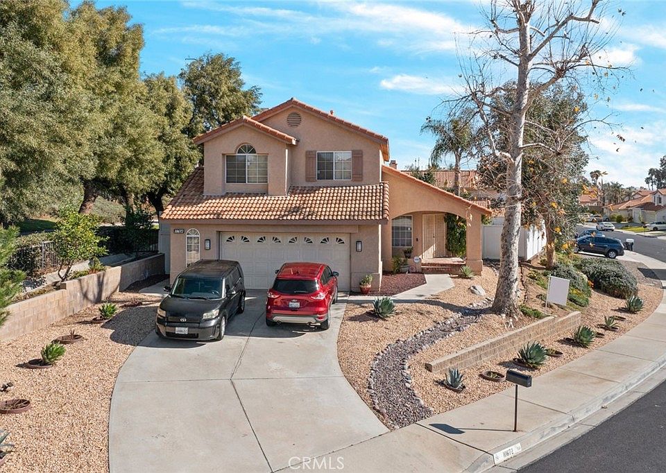 Welcome to your dream home! This spacious two-story beauty in Moreno Valley offers the perfect blend of comfort, style, and entertainment. Step inside to an inviting floor plan with abundant natural light. The main floor boasts a spacious living room that flows seamlessly into the dining area, where sliding glass doors lead to a beautifully landscaped backyard, main-floor bedroom offers convenience, along with direct access to the two-car garage. The kitchen features granite countertops, a peninsula, ample cabinet space, and a dishwasher, making it perfect for everyday use. Adjacent to the kitchen, the media room provides a fireplace for a cozy retreat for relaxation. Upstairs, you’ll find four additional bedrooms, including a primary suite with a walk-through closet hall to the primary bathroom. A flexible bonus area can serve as an exercise room, game room, hobby space, or whatever you imagine. Your private backyard oasis is perfect for BBQs and summer fun. Take a dip in the sparkling pool, unwind in the soothing hot tub, or entertain on the spacious patio deck, this yard is fully enclosed with vinyl fencing for added privacy. Additionally, the attic has been upgraded with new insulation and a radiant barrier, enhancing energy efficiency and reducing costs. Amenities include: Swimming pool, Lake, Gym, Event room and Courts for Basketball, Volleyball, Pickle ball and Tennis. This home is a must see. Don’t miss out on this Moreno Valley Gem.