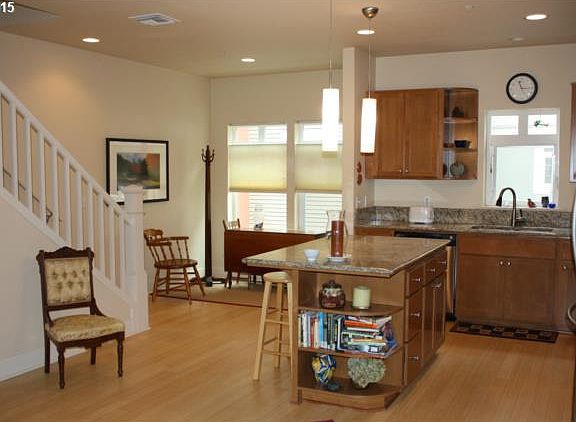 Stunning Live / Work Urban condo in downtown Milwaukie. Tax abate until 2017. Two bedroom 2 bath. 1602 square feet. Bamboo floors, SS appliances, slab granite counters. Great room open floor plan. One car att garage. Includes 136 Sq. Ft. office / retail, commercial space. Use it yourself or lease it out. Walk to restaurants, Wine Bar, coffee, Park, Library, Sunday Farmer's Market, Light Rail and the River. Walk score 91 !