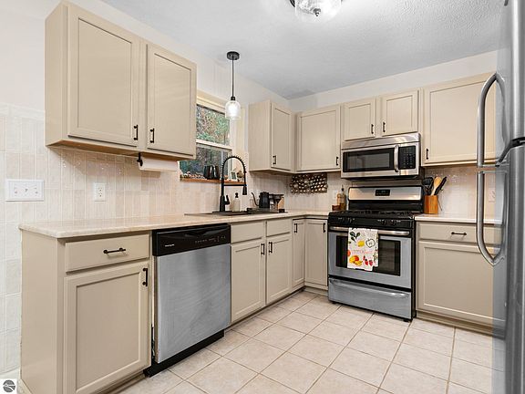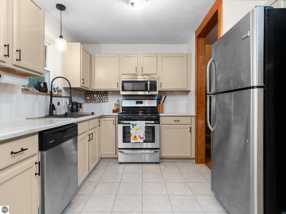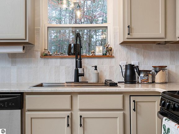 Welcome home to this beautifully updated 3-bedroom, 1-bath home, nestled in the heart of Interlochen. Recent upgrades include a new roof and gutters, fresh kitchen countertops, newly painted cabinets, and a stylish tile backsplash, adding a modern touch to the cozy interior. Additional features include hardwood and tile floors and an updated bath. The property is set on a nicely wooded lot that directly backs onto 261 acres of state land, offering easy access to scenic trails and endless opportunities for outdoor adventures. Just a short walk away is the serene Cedar Hedge Lake, a stunning 195-acre lake known for its excellent fishing and natural beauty. Beyond its peaceful surroundings, this home is perfectly located just minutes from the heart of Interlochen. Enjoy local dining, golf at the Interlochen Golf Course, and world-class performances at the Interlochen Arts Academy. Traverse City, with its amenities, is just a 15-minute drive away. Experience the perfect blend of nature, convenience, and modern updates in this inviting Interlochen home.