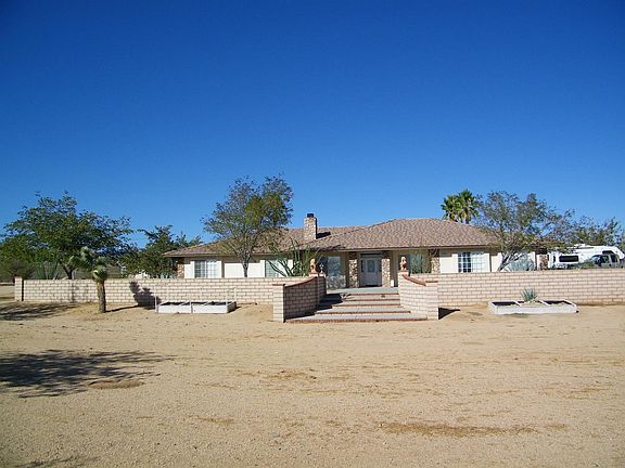 Your Dream Home with heated pool is waiting for you! This home has it all, no detail has been missed. Built in storage everywhere. 9 ft ceilings make every room feel grand. A wood burning insert in the formal living room with air return that can heat the entire home. Private home office with built in desk and drawers for your files. Love Warehouse shopping? The cabinets in this home can more than accommodate that. The Master suite offers his and her closets and walks out to the in-ground spa and under roof patio area. One bathroom in the home is specifically set for family and guests to come in on tile straight from the pool. The detached 3400 sf garage with living quarters is another amazing bonus. Two car parking and two RV doors for your boats, toys and RV's, its own septic and workshop. This home is just 20 minutes from Johnson Valley and nearby trails for off road riding. This home offers more than can be mentioned. A definite must see! Don't miss having it all on one property.