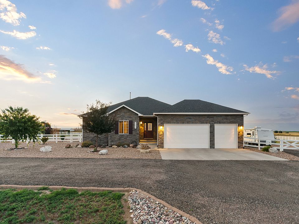 This Baseline Lakes South facing beauty will wow at every turn! Set on over an acre, with unobstructed western views, this four bedroom, semi-custom, brick ranch is nothing short of spectacular. Walk through the easy-maintenance xeriscaped front yard, covered entrance and into the gorgeously tiled foyer. Details like the leaded glass window and matching sidelight bring elegance and sunshine into this space, highlighting the arched entries, handsome wood railings, and statement wall. A stacked stone fireplace in the vaulted living space is a centerpiece, flanked by large windows looking out onto your spacious backyard. The kitchen charms as well with a breakfast nook, granite counters and stainless appliances. A large, secondary bedroom with full bath, primary suite with five piece bath, and a bright laundry room finish off the main level. Both baths are stylishly and luxuriously appointed! The basement is fully finished, with tons of space for storage, a third bedroom, full bath, an office(can be an additional bedroom), and a large rec room. Now brace yourself for this backyard! The huge patio is perfect for mountain-view dining, there's tons of grass for Rover or tossing a ball around, and then imagine capping off the evening by sitting around a firepit as a colorful Colorado sunset ignites the sky. The landscaping is already done for you and the young trees will continue to create privacy in the future. Currently there is plenty of space for extra parking/RV and the home was strategically placed on the lot to allow an oversized detached garage to be built. Sellers are on a list with a local builder which can be transferred to the new owner. Make this one yours today!