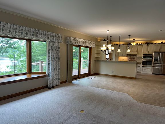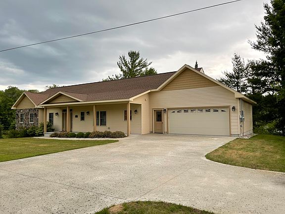 Recently built, sparkling clean, 3-bedroom, 2 bath ranch home on a full basement. 146' of frontage on picturesque Little Bradford Lake. Open floor plan, custom kitchen with large pantry, granite countertops, built in ovens & stainless appliances. Bay windows with pretty views, office area off dining room, main level master & laundry, attached garage is insulated, finished & heated. Covered front porch in front of home, two composite decks in rear, both with lighted posts. Basement is completely insulated with two large egress windows & plumbing for future bath. 3rd bedroom is used as office with glass French doors. Fully paved driveway has minor pitting - conveyed as is. Seller is mid-move - many more pictures to come. Use ''Waters'' as city when entering into GPS or follow directions inc