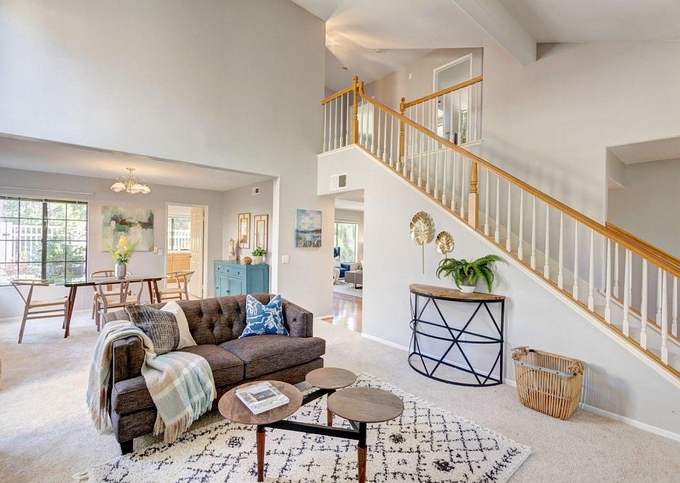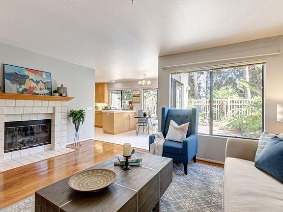GORGEOUS, naturally bright home w/ high ceilings has excellent layout w/ a FULL bedroom & downstairs. Home has been updated w/ NEW interior paint, NEW carpet & NEW luxury vinyl & has been very well maintained w/ improvements in the last few years to include:"Cool Wall" exterior stucco paint that seller paid over $31k (w/ transferable warranty), FURNACE, ROOF, GARBAGE DISPOSAL, DISHWASHER, VINYL FENCE, TERMITE CLEARANCE, WATER PRESSURE REGULATOR. A/C equipped on private lot w/ CANYON VIEWS. Enjoy the serene garden setting in your backyard that is private with canyon views, both sides of the home have vinyl fencing along with brand new vinyl rear fencing. Home is equipped with central A/C. There are two fireplaces with a formal dining room and a breakfast nook, plus a living room and a family room, and a pantry in kitchen area. What else would you need? This is the largest and best floorplan in this development. Upstairs is a very spacious master with high ceiling and en suite bath w/ sunken tub and a walk in closet. The secondary bedrooms are spacious and the home is naturally bright. Home has a lot of mechanical upgrades that the next buyer doesn't have to do, and they can focus on updating the home cosmetically to their liking! Walk to the strip mall, minutes to the 805, UTC and the plethora of restaurants and shops that Mira Mesa Blvd has to offer. All information is deemed reliable but not guaranteed. Buyer to verify all information prior to the close of escrow.
