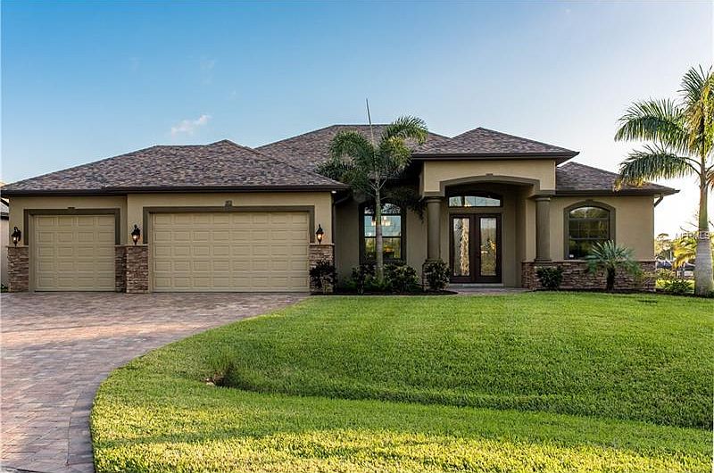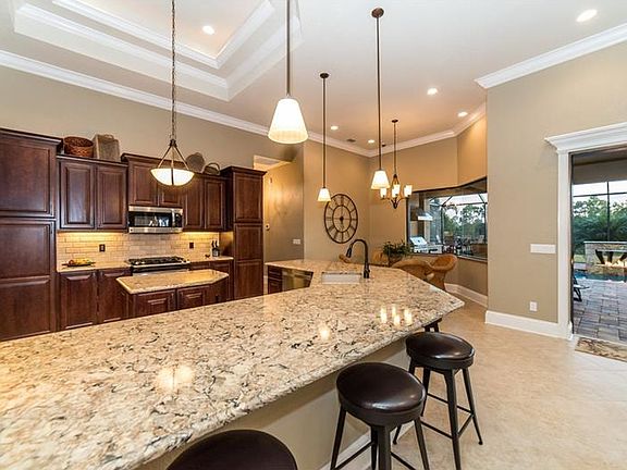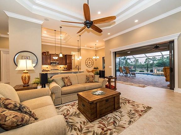 This 3 bedrooms, 3 bathrooms situated on the Sailboat access Santa Cruz Waterway with access to the Gulf of Mexico. Entertain and relax by the heated pool/spa on the Oversized Lanai enjoying the amazing water falls/fire feature with spectacular Southern Exposure of the Natural Preserve across the canal. The 24' Oversized 3 Bay Garage can accommodate extended cab vehicles. Some of the upscale features include interior columns, 8' solid core interior doors, lighted/crowned tray ceilings, decorative door casings and baseboard, 20" ceramic tile meticulously laid diagonally, upgraded appliance package, impact glass, commercial grade outdoor summer kitchen, salt water pool with separate pool bath, security/camera system, central vacuum, irrigation system and much more. For the gourmet cook a gas cooktop, 42" solid wood cabinets all soft closing and crown moulding, undercabinet lighting, travertine backsplash, and 24' of Quartz countertop. Serve your guests in the formal dining room or charming breakfast nook featuring aquarium glass overlooking the waterway. Enjoy romantic luxury in the master suite featuring a Clawfoot tub, Quartz vanities, walk in closets and solar tube for natural light. Secondary bedrooms are spacious and private in this Florida split plan. The study/office has a Murphy Bed for additional guests. This sailboat water has a large 40' composite dock with water/power and a 13,000-lb capacity lift. Seasonal/short term rental