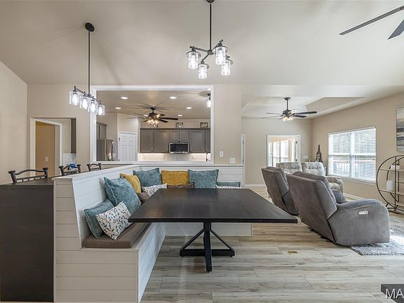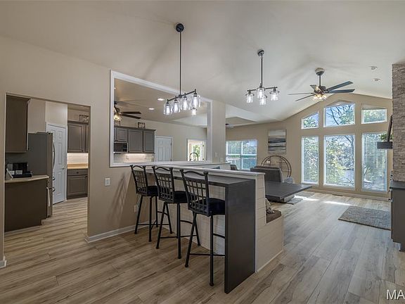 Stone fireplaceUpdated bathsCustom garageWater viewFlagstone patioCustom banquetteNewer decks