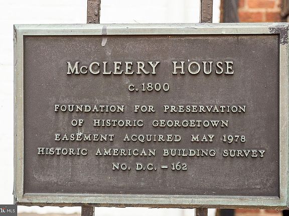 Own a piece of history. This home is ready for your updated touches. Known as the McCleery House, this 1800 Federal Townhouse was designated by the Joint Committee on Landmarks of National Capital as a Category III Landmark. This majestic home has a grand main level with original hardwood flooring including an intricate wood archway upon entry. The main level is perfect for entertaining along with the outdoor patio that leads in to the lower level expansive kitchen. The upper level consists of two bedrooms and a large bath ready for a modern upgrade. This is a very unique property with historic value in a perfect Georgetown location.