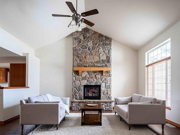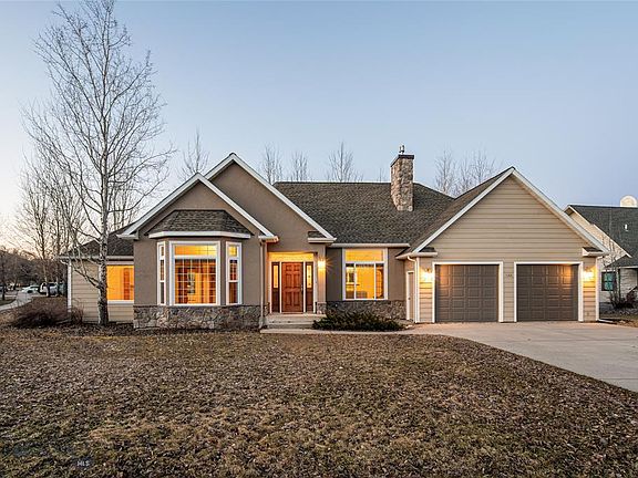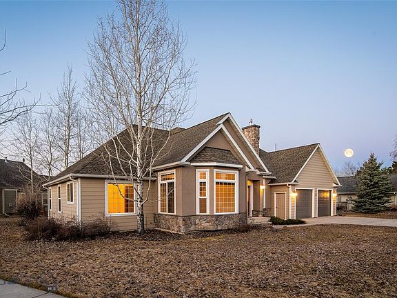 Lightly lived in single level home in Bridger Creek. Situated on a large corner lot that backs to trail system. Generously sized rooms & plenty of natural light w/gorgeous views. Rock chimney & gas fireplace in vaulted living room. Brand new laminate flooring. Plush carpeting. Wood trim & cherry cabinetry. Granite tile counters in kitchen - large island & SS appliances. Large master suite w/ large walk in closet. Master bath w/ jetted tub, tile shower & twin vanities. Hall bath & two additional bedrooms and a third half bath off laundry. Washer/dryer convey. South facing composite deck - the perfect location for morning coffee and enjoying the mountain lifestyle. Tandem attached 3 car garage - excellent storage or shop space. Across the street from Bridger Creek golf course & winter nordic trails. Minutes to Story Mill Park & trails that connect town to the mountains. Easy access to shopping, dining and amenities of historic downtown Bozeman. Don't miss the 360 VR Matterport tour.