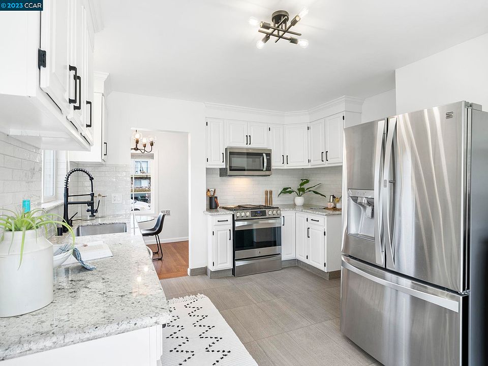 This charming San Leandro home offers a cozy yet spacious 1,102 square feet of living space on a sprawling 5,700 square foot lot. Much love was poured into this home by the current owners, from a revamped foundation to renovated bath & kitchen, to front and backyard hardscape, fresh sod and turf, no detail was left untouched. The kitchen and bathroom have been upgraded with new flooring, tiling, fixtures, and appliances, adding a modern twist to classic style. The backyard is perfect for entertaining, relaxation, and endless possibilities for customization. Whether you choose to add an ADU, a sports court, or leave room for large-scale entertaining, the options are limitless. Located close to BART and less than a mile from old town San Leandro, this home has easy access to shopping, dining, and entertainment. Don't miss out on the opportunity to make this charming home your own. Schedule a tour today.