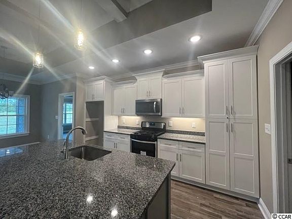 All brick 4 bedroom/3 bath home located on a large home site in the desirable Aynor School District. This top-selling home plan features a spacious great room, coffered ceilings, fireplace, granite island kitchen, large bedrooms, multiple storage closets, LVP flooring, screened in back porch, and a sprawling rear lawn. In addition to the granite counter tops, this upgraded kitchen features all stainless appliances, all wood 5-piece cabinetry with soft close dove-tailed drawers and doors. Enjoy your meals at the spacious island, or the formal dining room which features two-piece chair rail and wainscoting, and a crowned tray ceiling. The large master bedroom and bath features a garden soaking tub, over-sized shower, high-quality valves and faucets, granite vanity tops, double sinks, and two enormous master walk-in closets. Exterior features include a carriage style automatic garage door with glass window for natural light, quiet belt drive garage door opener, and maintenance free vinyl shake gables and dormers, brick soldier course and quoined corners, over-sized concrete double drive, entry sidewalk, screened rear porch and more! Call today to view this lovely home!