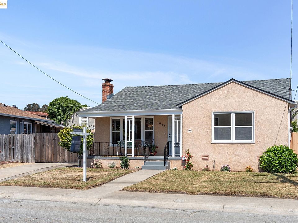 Welcome to 1068 Dillo St., a charming single-level home nestled in the centrally located Halcyon/Foothill neighborhood of San Leandro. Built in 1948, this 3-bedroom, 1-bathroom residence offers approximately 1,134 sq. ft. of light-filled living space and a spacious 5,828 sq. ft. lot. The home features dual paned windows, a spacious kitchen with abundant cabinet and counter space, a dining area, and a cozy living room with hardwood floors and a fireplace. Thoughtful updates completed in May 2025 include: a new roof on the main house, new appliances, fresh interior paint, new carpet, new kitchen flooring, stylish light fixtures, and a refreshed bathroom. The expansive backyard includes a detached garage, covered patio, and extra parking behind a fenced driveway—perfect for entertaining or future expansion. Conveniently located near shops, transit, and local amenities, with a Walk Score of 85, this home blends classic charm with modern improvements.