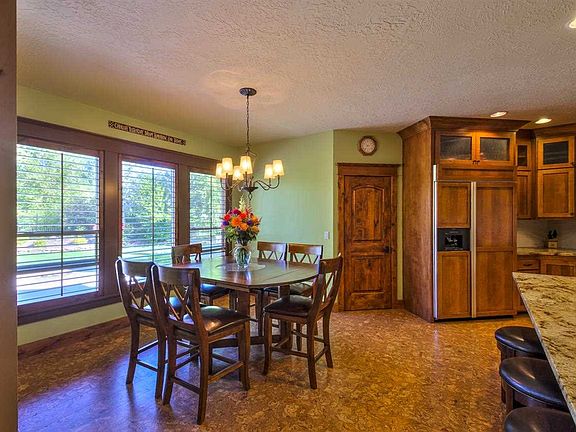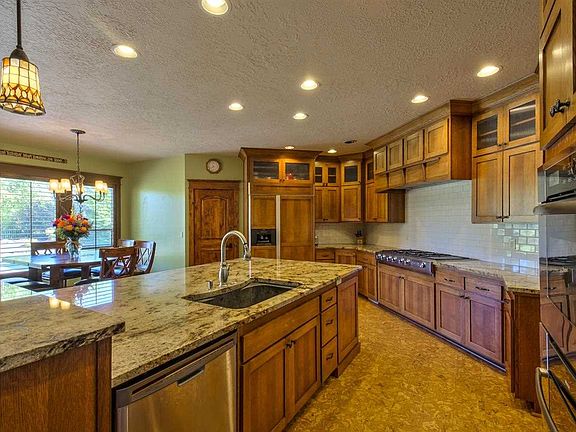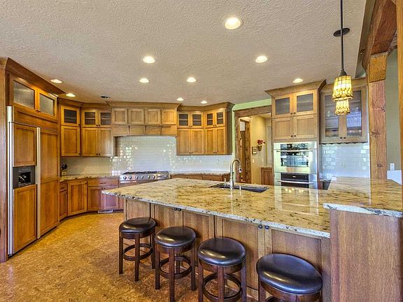 Best value in Eagle! Sun Valley style nestled in the heart of Eagle custom built on a desirable .46 private estate site in Brookwood Stunning entry with magnificent staircase! Beautiful rough-hewn wood beams add architectural character above the great room. Rich wide-plank hardwood floors and stacked stone fireplace suit the home's relaxed and rustic feel. A gourmet kitchen slab granite counter, lg center island. Rich hand crafted cabinetry, commercial grade SS appliances & over sized pantry.