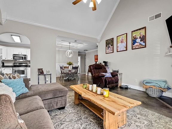 Welcome to this beautifully maintained 3-bed 2-bath home in the Emerald Ridge Neighborhood of Calera. This home features a comfortable living space with a sought-after split bedroom floor plan, NEW interior paint throughout common areas, updated lighting & more! Upon entering the home you will find an inviting foyer leading into a large den w/ wood-burning fireplace & cathedral ceiling. The den opens into the kitchen featuring stainless steel appliances, ample counter space, breakfast bar, pantry & a formal dining room complete with coffered ceiling. The primary bedroom features trey ceiling, walk in closet & bathroom complete w/ dual vanity, soaking tub, & separate shower. The home also includes two additional bedrooms, full bath, laundry room, & two-car garage. Outside, you will find a private fenced-in backyard w/ screened-in patio, perfect for unwinding after a long day. Enjoy access to the community pool. Plus, George Roy Recreational Park just a mile away! Roof-2022 & HVAC-2015.