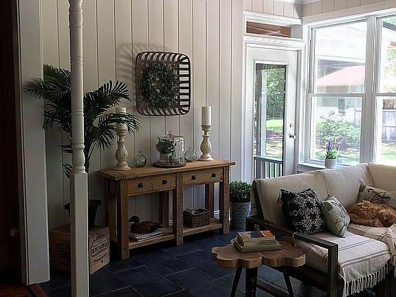 Charming Pine Harbor home on 1.17 gorgeous acres, cleared & wooded! You will love the elegant high ceilings, gas fireplace, cypress paneling, crown molding. Enjoy 2 lovely full suites, walk-in closet, plus 2 other bedrooms w/shared bath. Open kitchen w/new appliances, pantry. Newly added sunroom & huge, wrap around screened porch. Large laundry room with additional storage on main. Just steps to river! Land includes fenced yard, fruit trees, fish cleaning station, natural landscaping and wooded areas. Perfect primary or 2nd home retreat, w/vacation rental opportunities. Borders historic park; walk to river; near marina, Wildlife Refuge. Transferable termite bond in place.