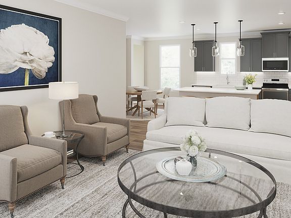This Covington floorplan features an open living concept with your Primary Suite downstairs. Beazer offers Choice Options at no additional cost to the buyer. These options are featured in the kitchen and primary bathroom for this home. Covered patio, tile floors, granite or quartz countertops in the kitchen, tile backsplash, and tile surround for your tub and shower in the primary bathroom, and tankless water heater are just some of the many included features in this home. Waverly will offer resort style Clubhouse w/ oversized pool, fitness center, playground, pocket parks, and walking trails. Save money in this brand new Energy Efficient home!
