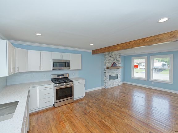 Energy efficient! Attic and basement have spray foamed insulation and have been sealed to save you money! Completely renovated! Everything brand new! New roof, new back deck, new driveway, new kitchen with Quarts Countertops and Stainless Steel appliances, new gleaming hardwood floors, new plumbing, new electrical panel, new windows, new lighting, gorgeous custom bathroom, full dry basement and a Huge fenced in yard! Gorgeous open floor concept with exposed beam.