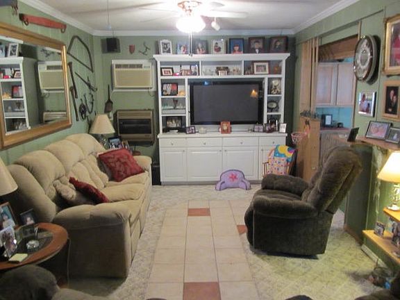 Unique rock-sided home with numerous outside carport and storage buildings and a beautiful inground pool. The yard of this house is totally fenced in with several interior fences for pets. The interior of the home is in excellent condition and has three bedrooms and two bathroom. One unique feature is the two kitchen set-up in house. Both areas are very nice and fully equipped with appliances and lots of cabinet space. HVAC is a heat pump unit for one side of house and a motel type heat/air unit, two gas space heater and a window AC unit for the left side of the house. There are two french door leading to the pool area and also the covered back porch area beside the pool. There is brick privacy wall around the pool. There is covered porch on either side of the pool and a two storage buildings in the back yard. On the right side of the house there is one carport with a concrete driveway that goes into a long garage area that could be used to store vehicles or other items. The left side of house has a concrete driveway with four covered carport parking spaces. There are double pane windows inside house and it has a stone side and wood exterior with architectural shingles on the house. There is a family room between the kitchens and a big living room at the front of the house. This home is immaculate inside and out.